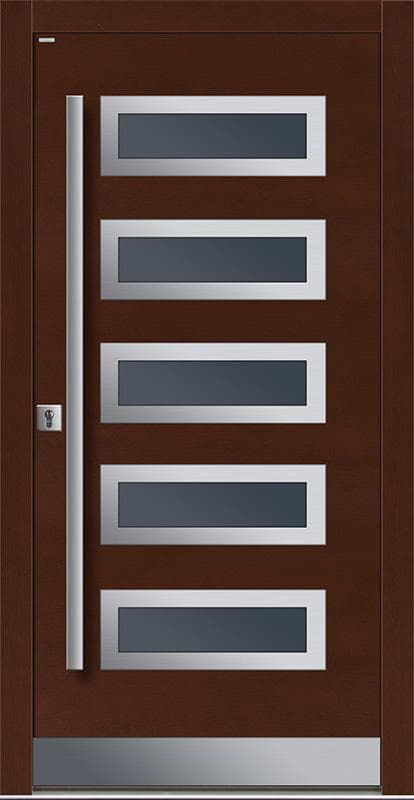 Drzwi zewnętrzne wykonane z wysokiej jakości drewna, cechujących się systemem okucia INOX precyzyjnie dopasowanego w strukturze skrzydła. Połączenie okucia INOX z odpowiednio dobranym wzorem drewna zapewnia oryginalny wygląd każdego domu. Decydując się na zakup drzwi otrzymujemy produkt z wysoką szczelnością i trwałością techniczną.